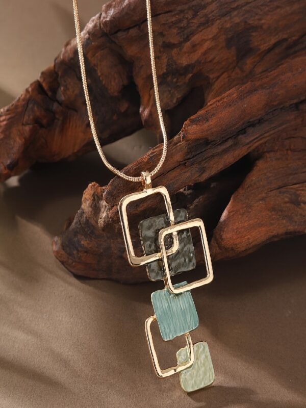 Gold Square Layered Pendant Necklace: Gradient Green Women’s Fashion Jewelry